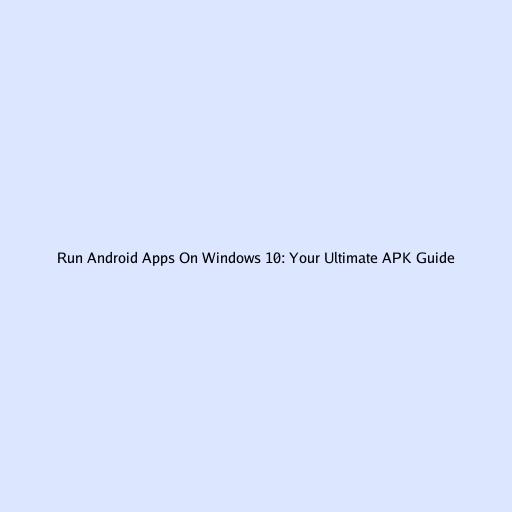 Run Android Apps on Windows 10: Your Ultimate APK Guide