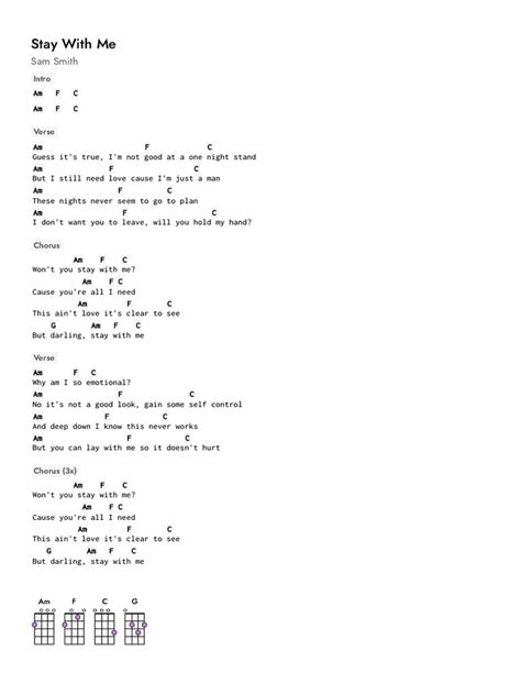 The beauty of “Stay With Me” lies in its simplicity. The entire song primarily uses just four chords, making it extremely accessible for beginners. These chords are: