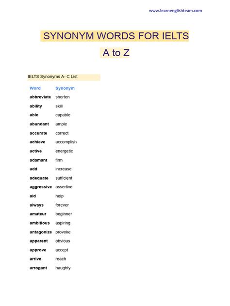 Synonyms For
