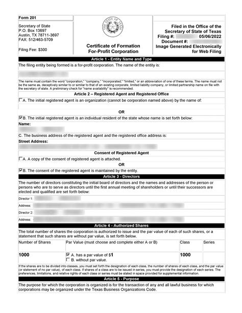 3. Filing the Certificate of Formation (Form 205) in Texas