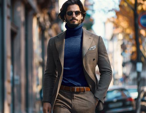 Elevate your evening wear game with the turtleneck suit . This is where you can really have some fun. Picture this: a slick, dark-colored suit (think deep jewel tones like emerald or sapphire, or classic black) paired with a black or charcoal turtleneck. It’s instant suave . This look is fantastic for cocktail parties, gallery openings, date nights, or even a stylish wedding guest outfit (check the dress code, of course!). It’s a sophisticated alternative to a tuxedo or a standard suit, offering a more modern and perhaps slightly edgier vibe. The absence of a tie lends a relaxed yet undeniably chic feel, perfect for mingling and enjoying the occasion. You can even experiment with different textures here – perhaps a velvet blazer with a silk-blend turtleneck for a touch of luxury. The key is to maintain a sense of polish and intentionality. This ensemble is all about understated confidence and a refined sense of style. It’s a look that suggests you’ve put thought into your appearance, effortlessly blending classic tailoring with a contemporary aesthetic. Whether you’re attending a formal affair or a more casual get-together, the turtleneck suit offers a distinctive and memorable way to make a stylish statement, ensuring you look sharp and feel confident throughout the evening. It’s the perfect choice for anyone looking to break away from the predictable and embrace a more fashion-forward approach to evening attire, proving that sophistication doesn’t always require a tie.