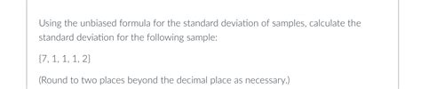 Online Calculators are also available. Lots of websites offer free online calculators that do all the work for you. Just enter your data, and the calculator will give you the unbiased standard deviation. While they are convenient, make sure you trust the source.