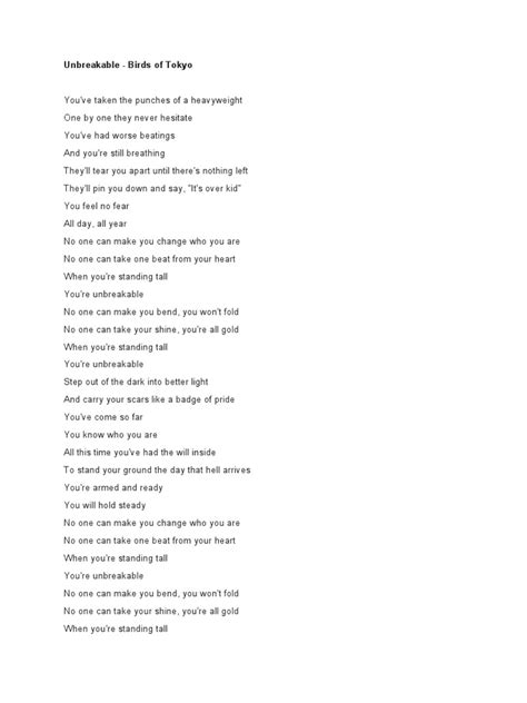 So, guys, as we wrap up our deep dive into the lyrics of “Unbreakable Heaven,” the takeaway is clear: this song is a powerful anthem for resilience and inner strength. It reminds us that no matter what life throws our way, we have the capacity to find and protect our own unbreakable heaven . Whether it’s through the imagery of shelters in storms, the emotional journey from despair to hope, or its relevance in our modern struggles, the song offers a message that is both profound and accessible. It encourages us to look inward, to cultivate our inner sanctuary, and to draw strength from that unshakeable core. Remember those metaphors? Keep them in your mind. When you face your own storms, think of the steady flame, the tall mountain, the stars in the darkest night. These aren’t just pretty words; they are tools for building your own resilience. The message of “Unbreakable Heaven” is a timeless one: that true strength comes from within, and that there is a sacred, inviolable space within each of us that can weather any storm. So, go forth, embrace your challenges, and never forget to hold onto your own unbreakable heaven. It’s always there, waiting for you to tap into its power. Keep listening, keep reflecting, and most importantly, keep being unbreakable. This song is more than just lyrics; it’s a philosophy for life, a testament to the enduring power of the human spirit. It’s a call to arms for your inner self, urging you to recognize and defend the sanctuary that resides within you. Cherish it, nurture it, and let it be your guiding light through all of life’s complexities. The journey might be tough, but with your unbreakable heaven as your guide, you are always equipped to face whatever comes your way. Stay strong, stay hopeful, and stay unbreakable, my friends!