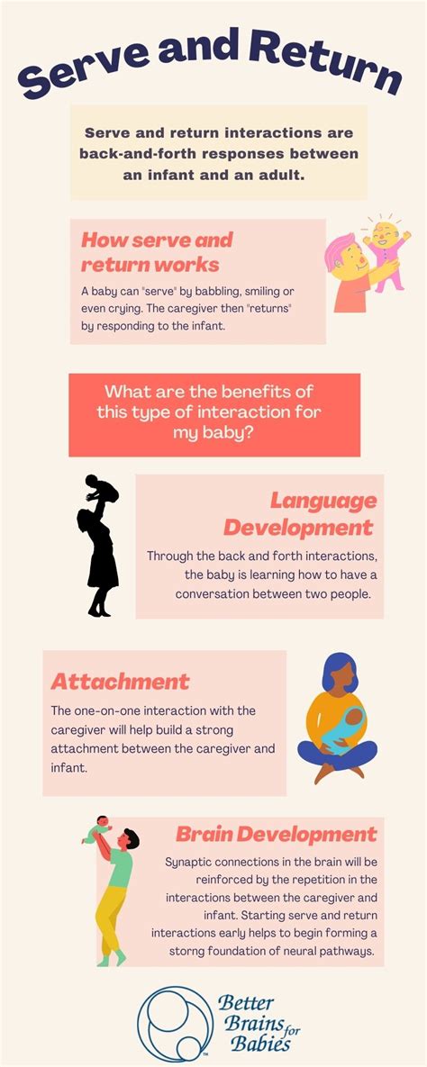 Now, the quality of the return is super important. It’s not enough to just respond ; the response needs to be appropriate, timely, and supportive. Imagine a child points to a toy. A good return might be the caregiver handing them the toy, naming it, and smiling. A less effective return might be ignoring the child or giving a delayed response. Consistent, positive returns build trust and encourage children to keep engaging. When the caregiver actively responds in a way that’s in tune with what the child is trying to communicate, it builds the child’s sense of security. This leads to them feeling more confident and willing to explore their environment and learn new things. It gives them the confidence to initiate further interactions and develop their communication skills. Basically, it’s like a cycle, you know? The more positive and supportive the returns, the more the child will serve, and the more they serve, the more opportunities there are for learning and growth. This constant give-and-take, this dance, is what fosters the connection between the caregiver and the child, helping them develop a strong bond. It also helps the child develop self-regulation skills, as they learn how to manage their emotions and behaviors in response to the caregiver’s reactions. It’s really a foundational aspect of child development, and understanding its importance is key to promoting healthy and successful childhoods!