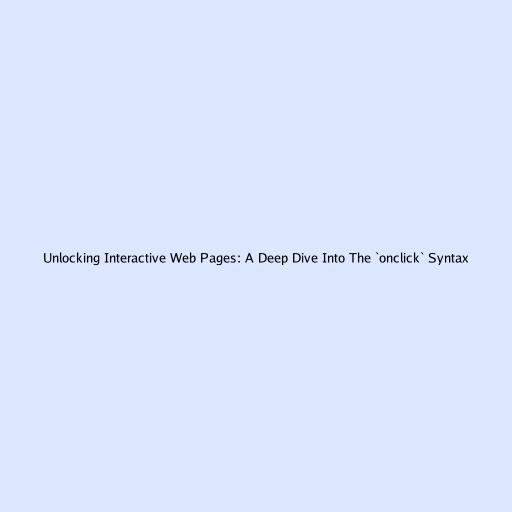 Unlocking Interactive Web Pages: A Deep Dive into the onclick Syntax
