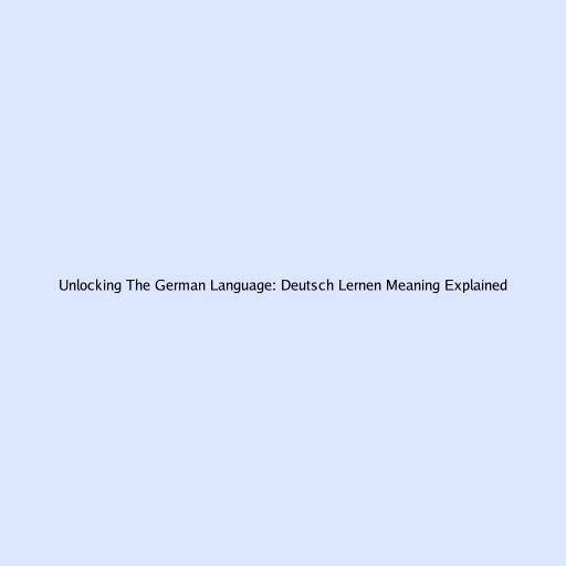 Unlocking the German Language: Deutsch Lernen Meaning Explained