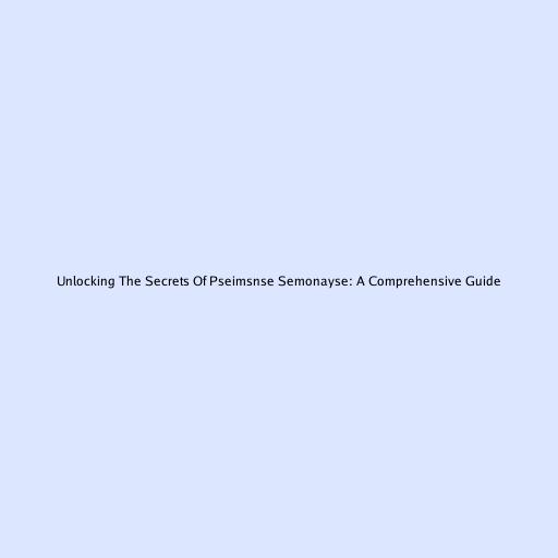 Unlocking the Secrets of pseimsnse semonayse: A Comprehensive Guide