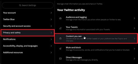 4. Choose “Content you see”: In the “Privacy and safety” menu, find and click on “Content you see.”