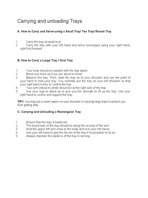 Alright, let’s get down to the nitty-gritty, the ‘how-to’ of unpacking trays at the service point or waiter’s station with care . First off, always assess your tray before you start moving anything. What’s on it? Is it hot? Is it precariously balanced? Knowing what you’re dealing with is half the battle. Start with the items that are most stable and less likely to shift – usually plates. Use your non-dominant hand to stabilize the item on the tray while your dominant hand gently lifts it. When placing items on the table or a side station, do it with a smooth, controlled motion. Avoid sudden jerks or drops. For glasses, especially those with liquids, tilt them slightly as you move them to prevent sloshing. If a glass is full to the brim, maybe consider taking a slightly wider grip or even using a coaster to provide extra stability underneath. Another pro tip: don’t overload your tray in the first place! A tray that’s too full is a recipe for disaster. Make multiple trips if necessary. It’s far better to make an extra trip than to risk dropping everything. When you’re at the waiter’s station, clearing plates, stack them carefully. Don’t just haphazardly pile them up. Ensure they are aligned so they don’t slide off. For glassware, consider using a separate, smaller tray or a caddy to transport them to the dish pit. This minimizes the risk of them knocking against plates or other items. Remember to always maintain good posture. Bending your knees instead of just your back when reaching for items can prevent strain and give you better control. And for the love of all that is good, clear your workspace ! A cluttered service area makes efficient and safe tray unpacking nearly impossible. Keep your station tidy so you can move freely and place items without obstruction. Finally, communicate with your colleagues. If you see someone struggling with a heavily loaded tray, offer a hand. Teamwork makes the dream work, especially in a fast-paced environment. So, by implementing these techniques, you’re not just unpacking a tray; you’re demonstrating your commitment to quality service and a safe working environment. It’s all about being deliberate and mindful in every action you take.
