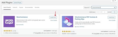 3. Install and Activate: Find the WooCommerce plugin (it should be the first one) and click Install Now . Once it’s installed, click Activate .