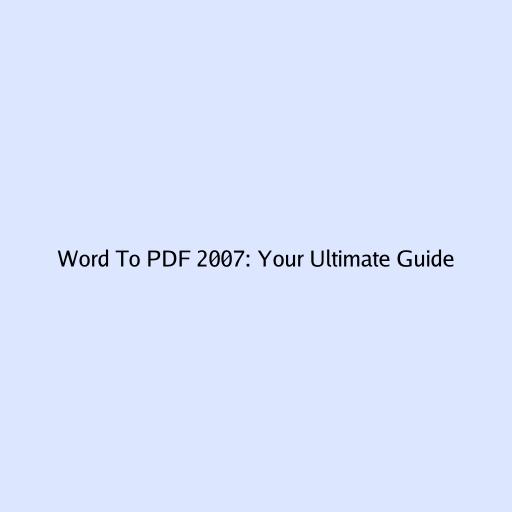 Word to PDF 2007: Your Ultimate Guide